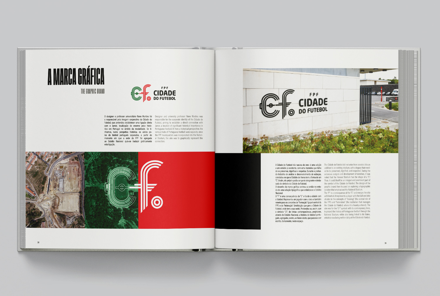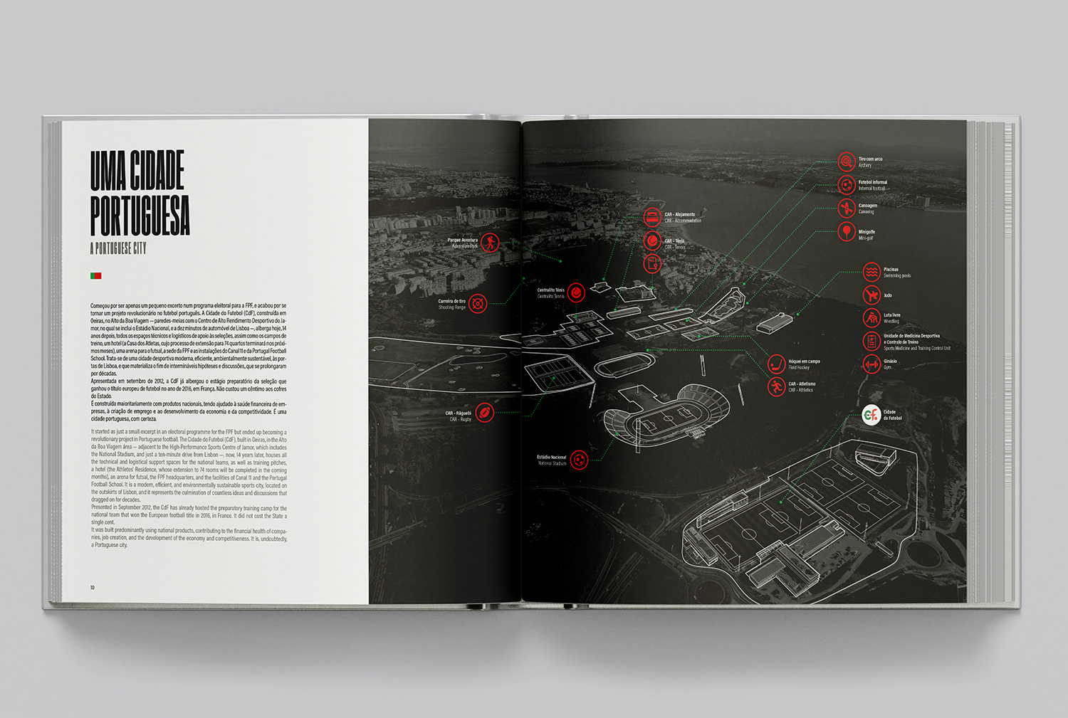 Cidade do Futebol: Espelho do Futebol do Futuro. Federação Portuguesa de Futebol | Design: Nuno Martins | Fotografia: Diogo Pinto | Texto: João Marcelino | Ano: 2024